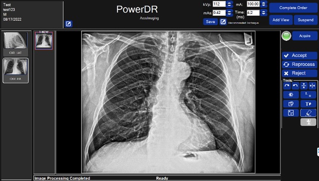 Our AccuImaging software captures exam orders, interfaces with the DR panel or CR cassette, and delivers high-resolution diagnostic images through FDA 510K-certified AI processing. Images stored locally and/or in our cloud for backup and disaster recovery.